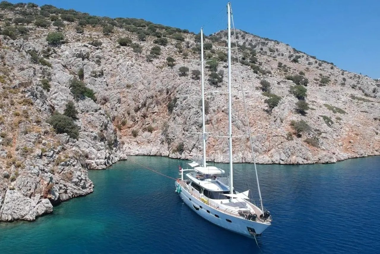Operating year-round in the turquoise waters of Türkiye and the Aegean Sea, ANGELO III blends the romance of sailing with the luxury of contemporary yachting, making her the perfect choice for those seeking authentic Mediterranean moments.