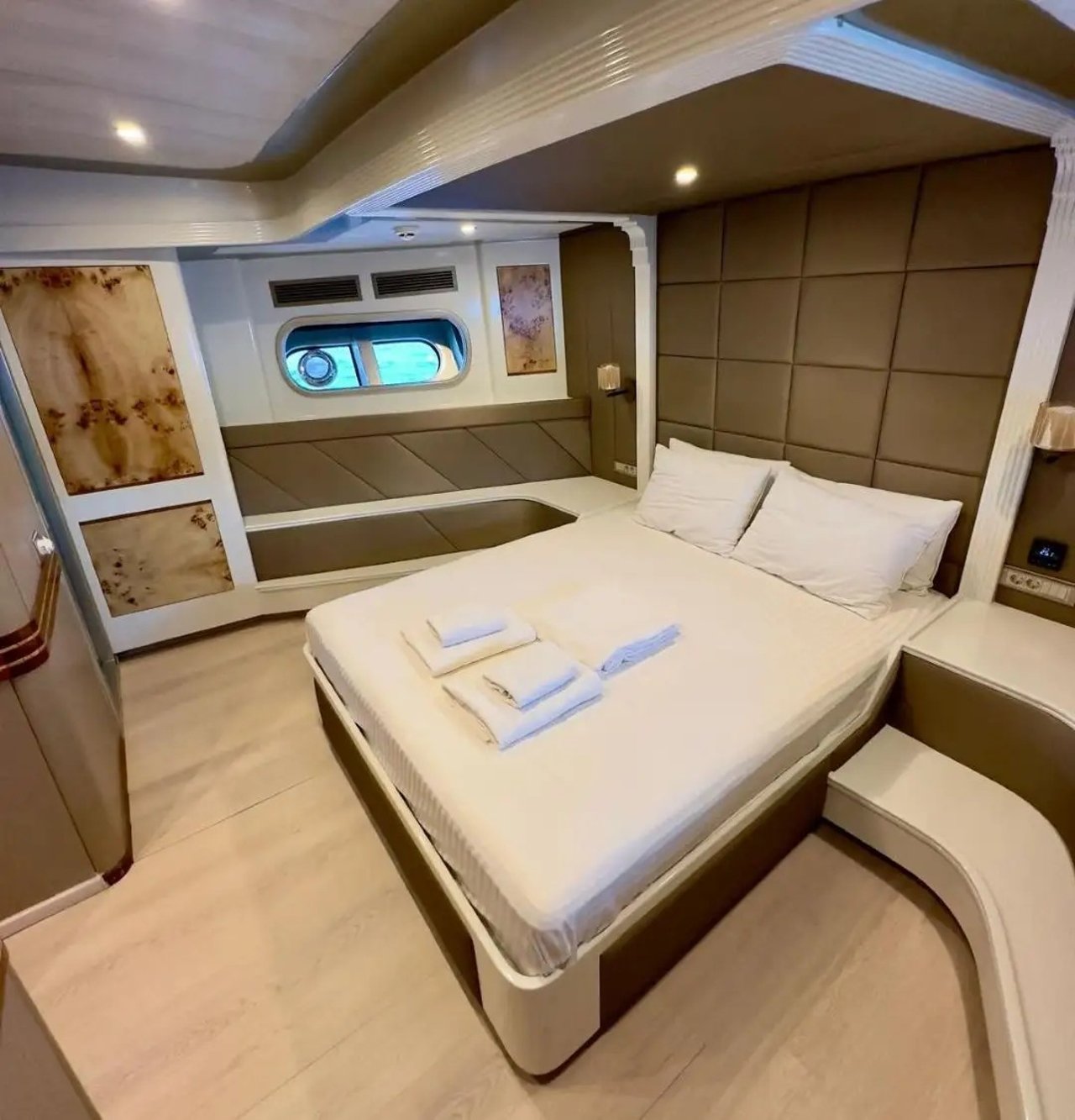 Brand-new 35m motor-sailer launched in 2024 • Rare 5-cabin layout accommodating up to 10 guests • Expansive deck spaces for alfresco dining & sunbathing • Timeless Turkish craftsmanship blended with modern luxury • Wide selection of water toys including waterskis, wakeboards & paddleboards • Professional crew delivering warm hospitality in the Aegean