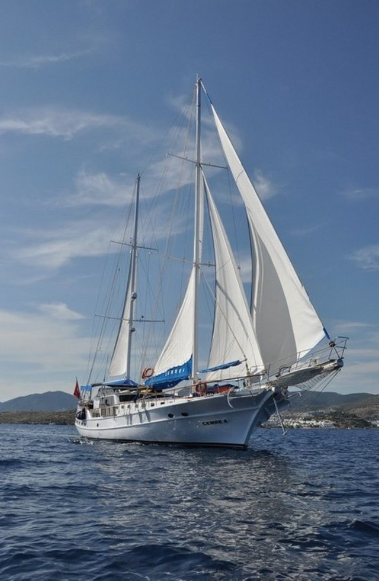 CEMRE 4 operates along Turkey’s famed cruising grounds, offering itineraries that include the Turquoise Coast, Bodrum, Marmaris, and Göcek. Guests can explore ancient ruins, hidden coves, and lively harbors while indulging in Turkish hospitality and Mediterranean beauty.