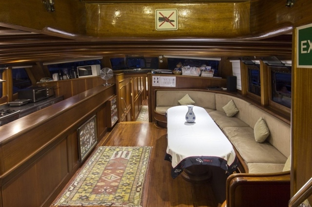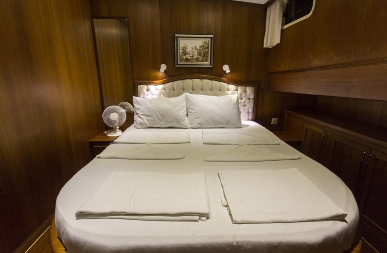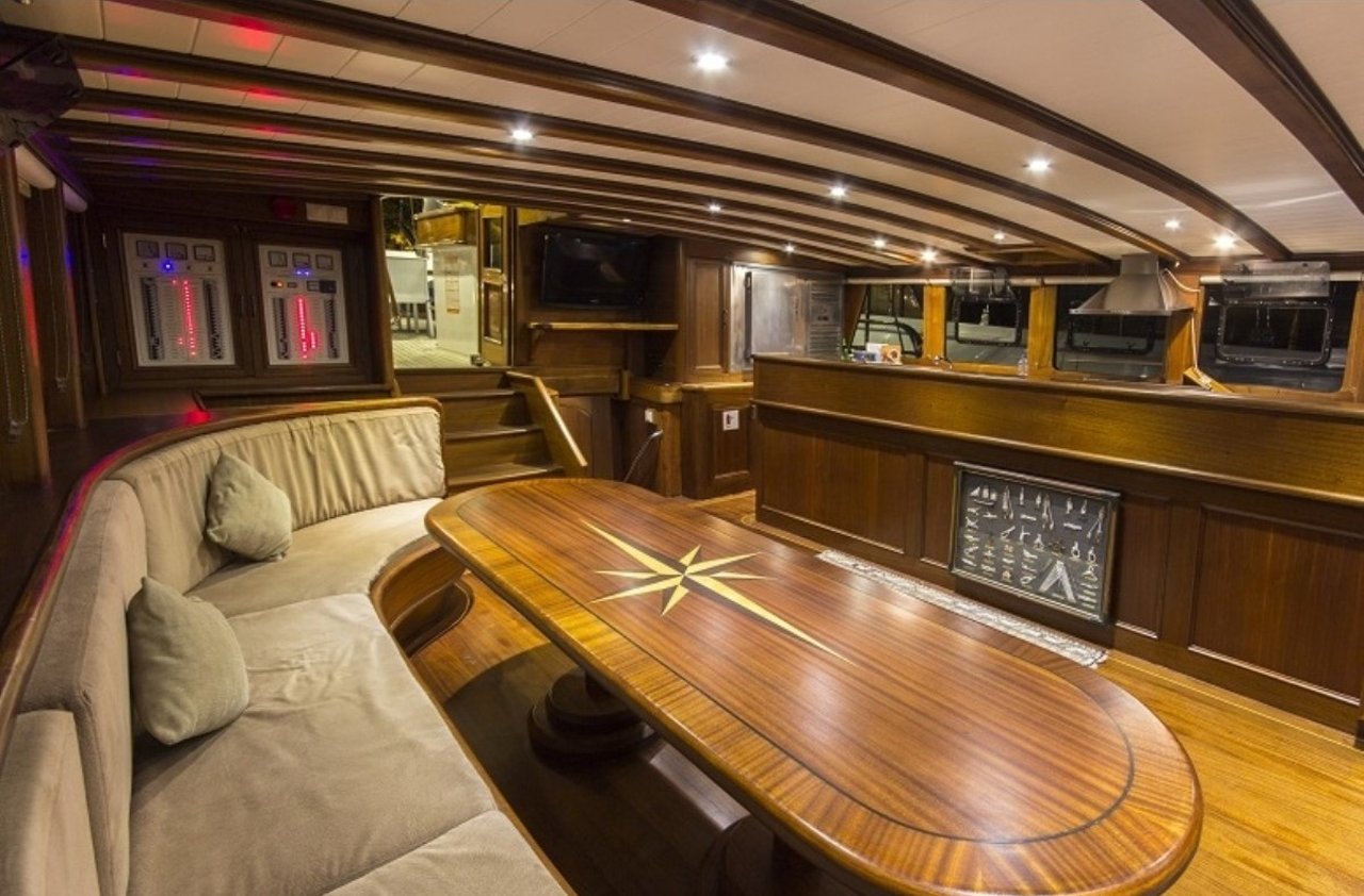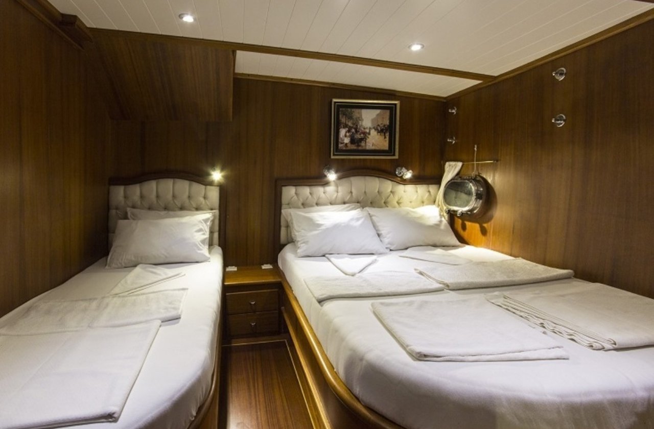 With a beam of 7.6m and a draft of 3.4m, CEMRE 4 is built for stability and smooth sailing. Designed as a classic gulet, she provides a comfortable cruising experience, whether gliding under sail or motoring between destinations. Her shallow draft allows access to quiet bays and secluded anchorages, creating the perfect setting for discovery along the Turkish Riviera.
