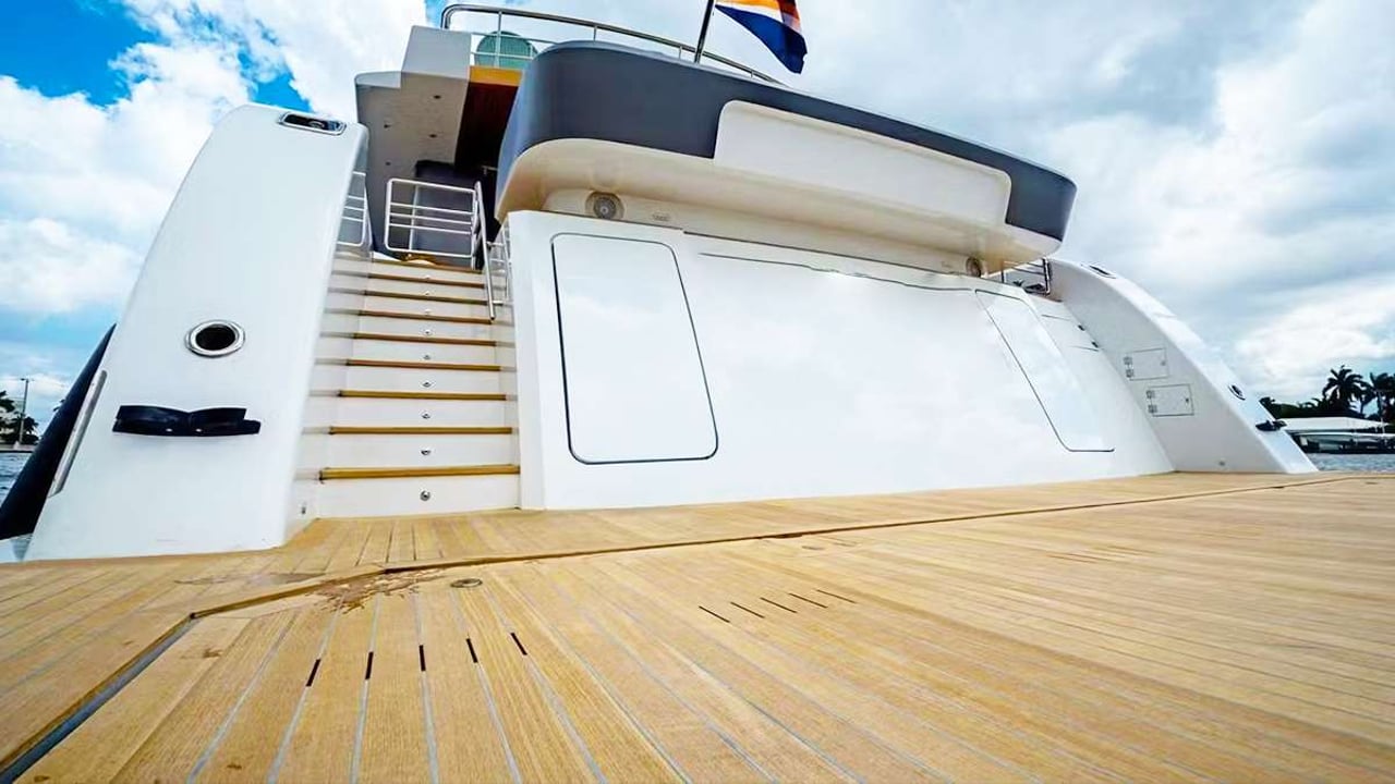 Spacious 32.3m motor yacht with 8.5m beam • Designed by H2 Yacht Design • Accommodates 9 guests in 4 suites • Jacuzzi on the flybridge for open-air relaxation • Wide selection of water toys including Jet Ski, Seabobs & e-foil • Professional crew of 5 delivering first-class service