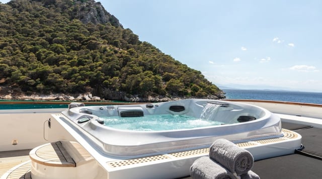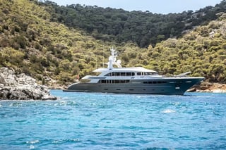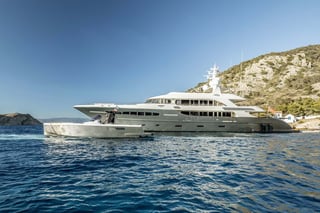 The magnificent 49m/160’9″ GHOST III, formerly known as Nassima, represents the pinnacle of luxury yachting with her sophisticated interior design by Maja von Dewitz. Built by Acico in 2012, this aluminum-hulled masterpiece accommodates 12 guests across six luxurious cabins, all served by a professional crew of 11. Powered by twin Caterpillar engines, she cruises at 13 knots with a maximum speed of 22 knots and an impressive 8,600 nautical mile range. GHOST III delivers an unparalleled charter experience with amenities including a fully-equipped gym, deck jacuzzi, and ship-wide Wi-Fi connectivity. Her extensive toy collection features a thrilling waterslide from the sun deck, two SeaDoo WaveRunners, water skis, scuba diving equipment, a seabob, wakeboards, and various inflatable water toys, while her 11m/36’1″ Fjord Jet Tender ensures stylish shore excursions. Currently available for Mediterranean charters, GHOST III combines world-class luxury with adventure, creating the perfect setting for unforgettable experiences at sea.