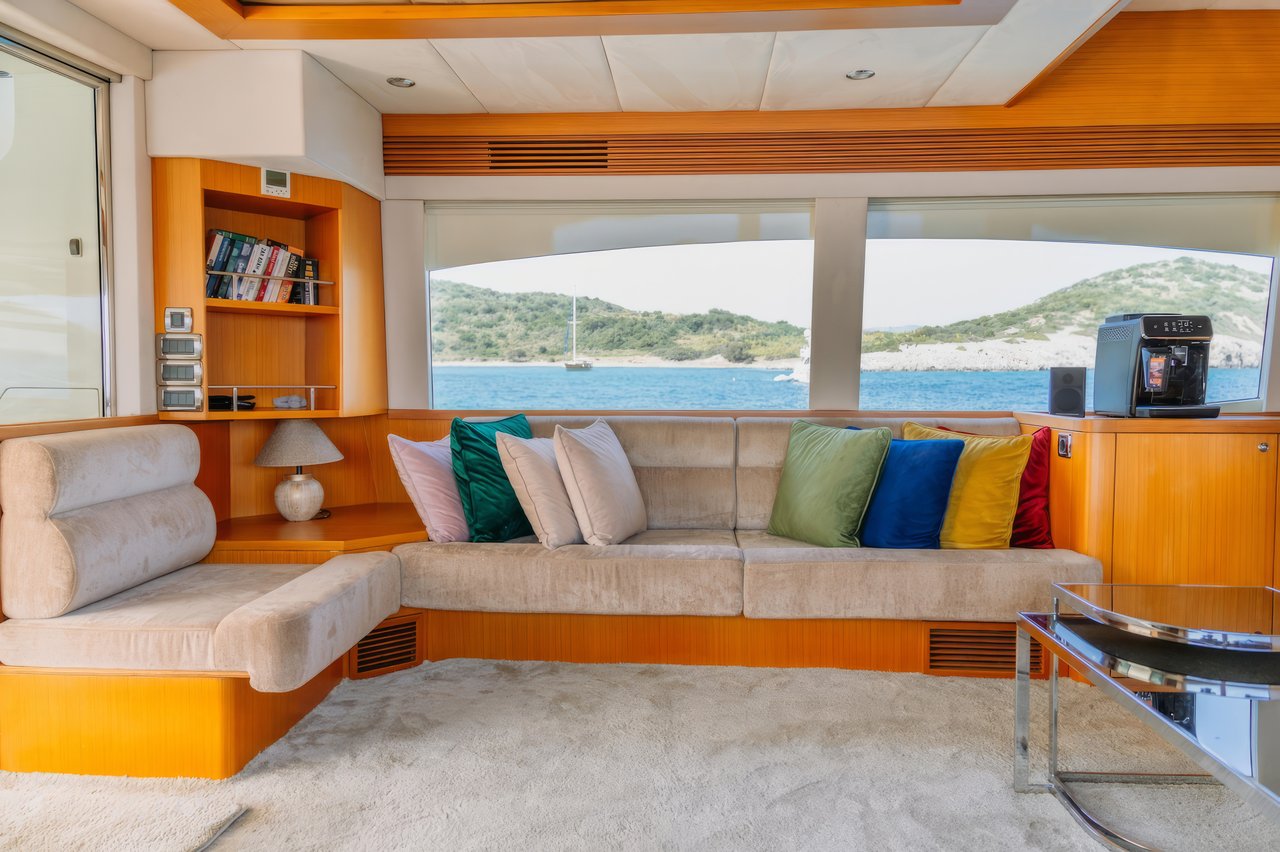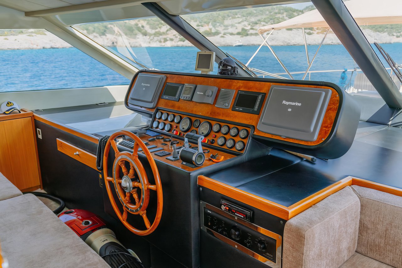With a GRP hull and superstructure, GKM REIS features a semi-displacement design that ensures both speed and stability. Cruising comfortably at 12 knots and reaching a top speed of 17 knots, she is ideally suited for coastal exploration. Her shallow 1.4m draft allows access to secluded bays and picturesque harbors beyond the reach of many yachts.