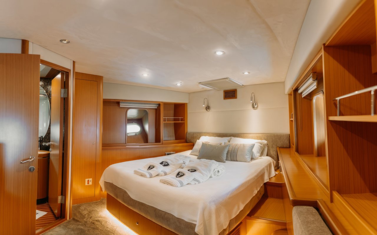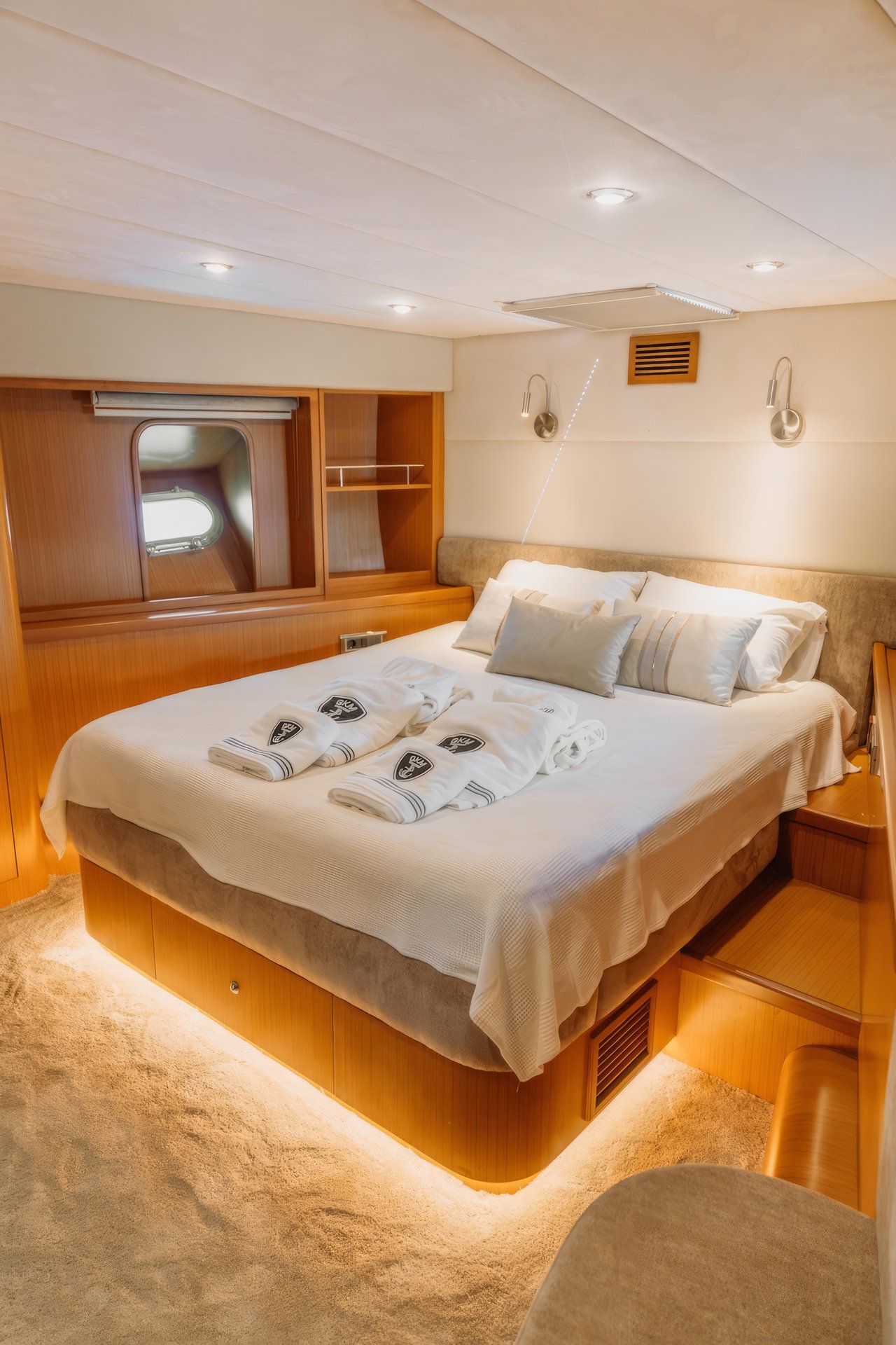 GKM REIS offers elegant accommodation for up to 8 guests across 4 well-appointed cabins. Each suite features ensuite facilities, plush bedding, and soothing interiors for complete relaxation.