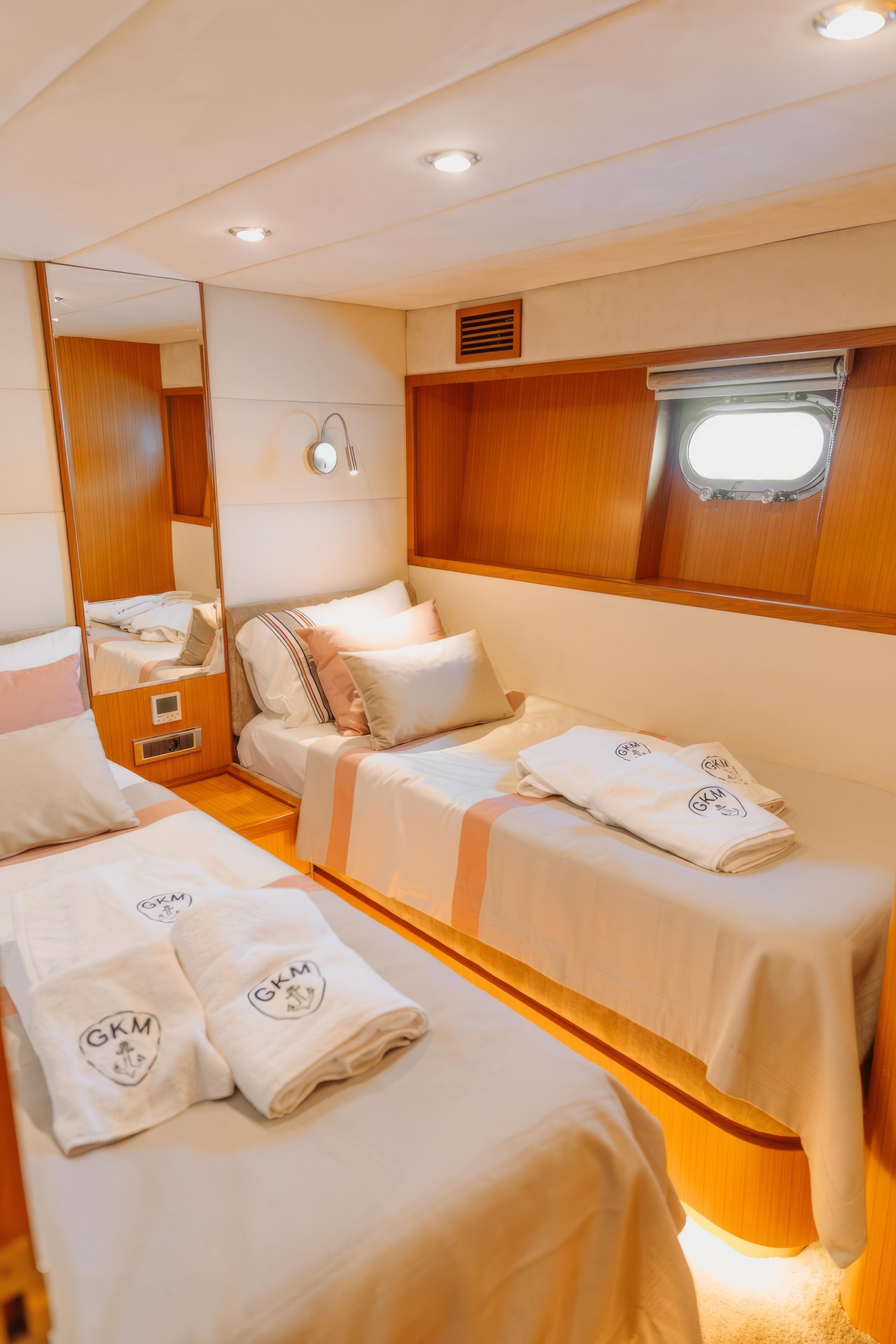 GKM REIS embodies the perfect balance of Turkish craftsmanship, family-friendly design, and modern comfort. With two master cabins, expansive deck spaces, and a full suite of water toys, she caters equally to relaxation and adventure. Whether exploring hidden coves, savoring authentic cuisine, or enjoying vibrant evenings at anchor, GKM REIS promises a charter experience that is both refined and unforgettable.