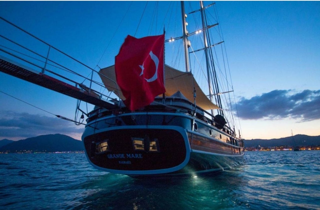 Luxury sailing yacht GRANDE MARE is the ideal gulet charter for those seeking timeless elegance, modern comfort, and authentic maritime character. Built in 2012, this 34-meter (111’7″) handcrafted Turkish gulet offers an exquisite blend of spacious accommodation, graceful lines, and serene cruising performance, making it a top-tier choice for yacht charters in Turkey, Greece, and the East Mediterranean.