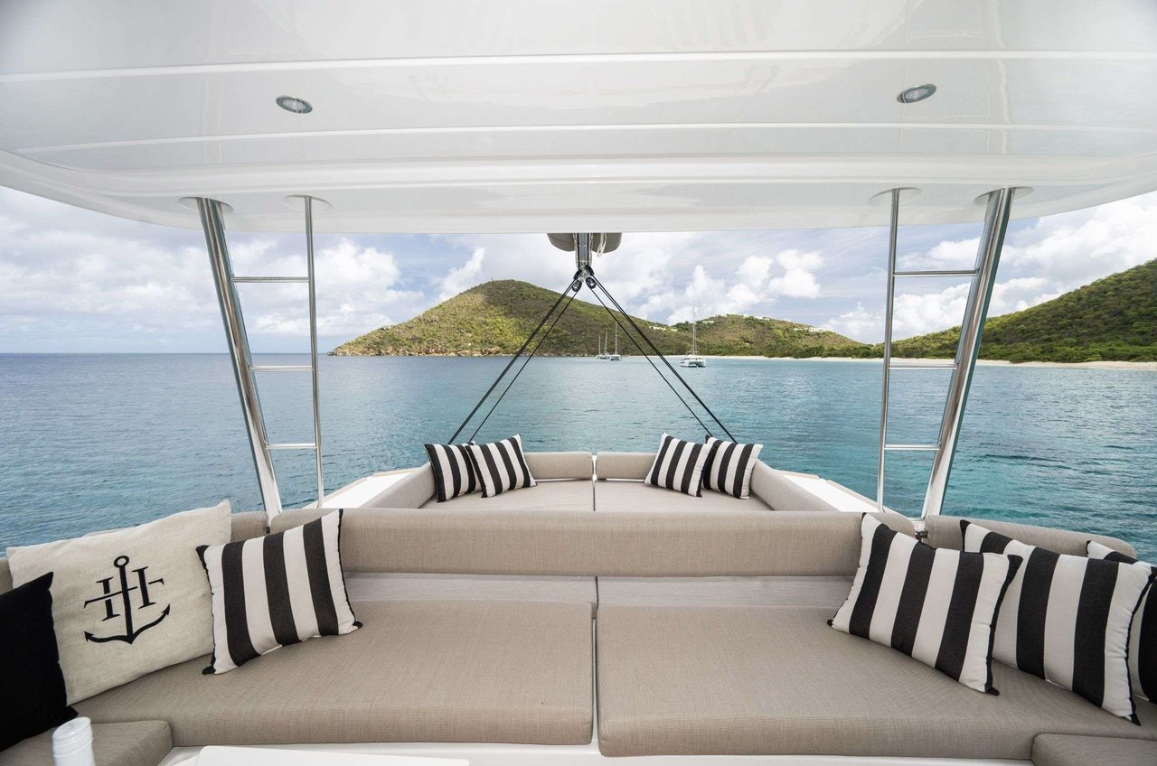As a brand new 2023 Bali 5.4, HYDROTHERAPY is a floating sanctuary that redefines the concept of open-space sailing. Her award-winning design eliminates traditional barriers, creating seamless transitions between the salon, cockpit, and foredeck. With her full “Bali garage door” aft wall that vanishes entirely, the yacht welcomes in the Caribbean breeze and offers unrivalled panoramic views of paradise.