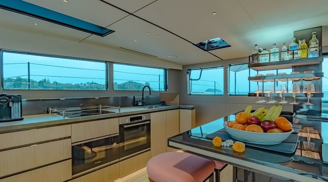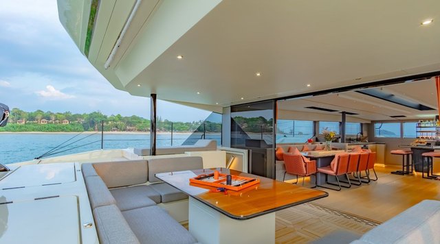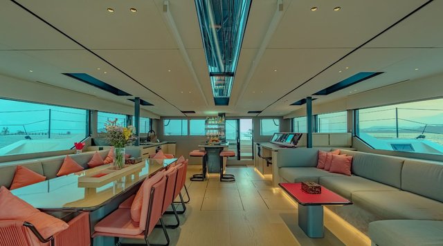 Within JACK, indulge in the lavish features that await you: a grand saloon lounge boasting a deluxe dining area and a captivating walk-around bar. Venture outside and discover the expansive aft deck offering plush sofas and a charming al fresco dining setting, perfect for enjoying sunlit meals with a breathtaking view.