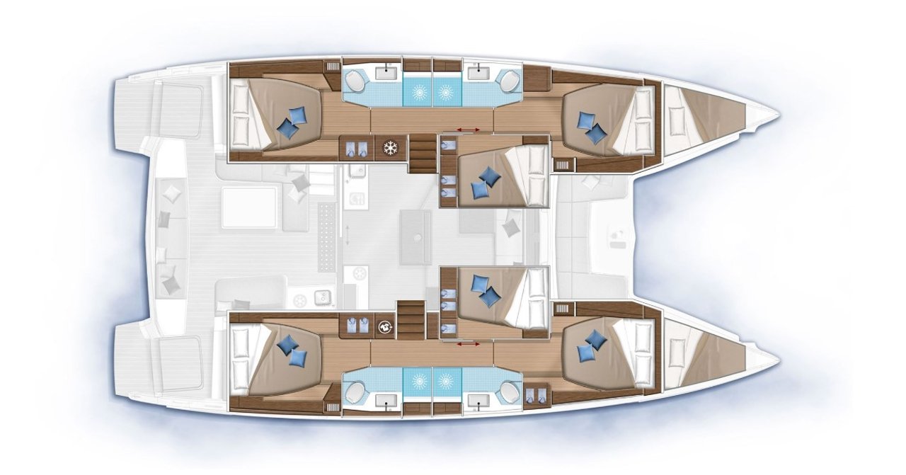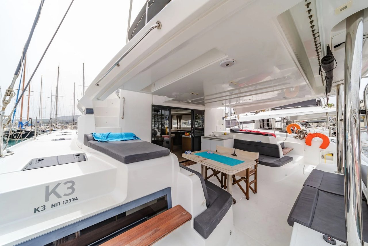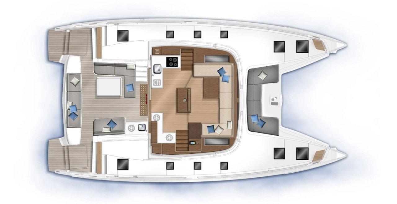 The 50 has a flybridge with dual access and a helm station provide perfect visibility. A large open cockpit faces out to sea, large stern skirts enable easy access to the boat, and a large modular dining area with removable bench seats welcomes children and adults.