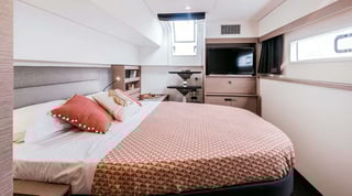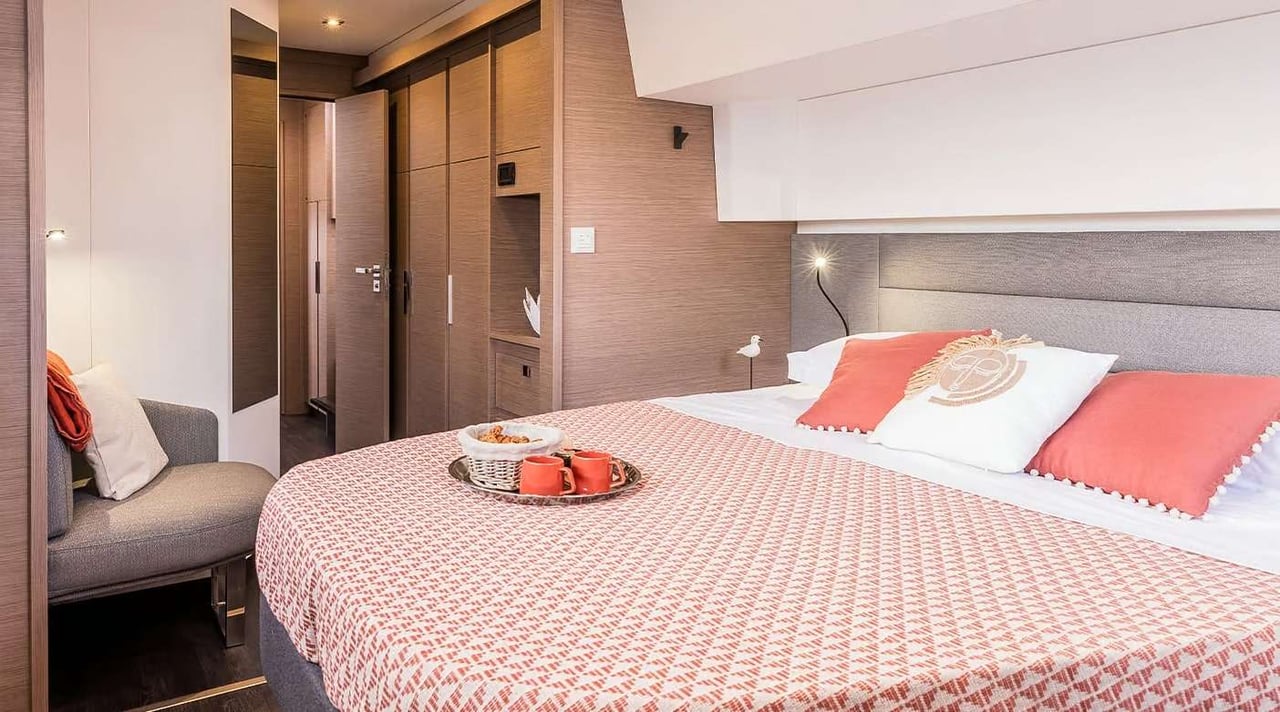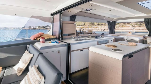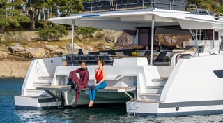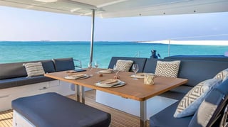 S/Y Kebisiks is a stunning 2025 Fountaine Pajot Aura 51 catamaran, epitomizing modern luxury and innovative design. Measuring 15.91m (50.8 ft) and accommodating up to 10 guests in 5 beautifully appointed cabins, including a spacious Maestro cabin with a queen-size bed and four double cabins, all with en-suite bathrooms, she promises an unforgettable charter experience. Her standout features include a voluminous layout, enhanced natural light, and seamless indoor-outdoor living, with fully retractable main bulkhead doors creating a breathtaking 3-meter opening between the saloon, galley, and cockpit. With a large flybridge, advanced energy management, full A/C, and a plethora of water toys, Kebisiks is perfectly equipped for both relaxation and adventure. Combined with a professional and attentive two-person crew, she offers an unrivaled platform for exploring the seas in style and comfort.