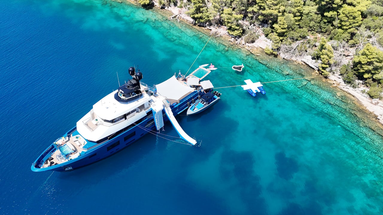 The yacht’s expansive interiors create an inviting ambiance with stylish living areas designed for relaxation and socializing. Guests enjoy a fully equipped beach club that offers direct water access, alongside a deck jacuzzi for indulgent moments under the sun or stars. Seamless connectivity is ensured by onboard Wi-Fi, while comprehensive air conditioning guarantees comfort in every climate.