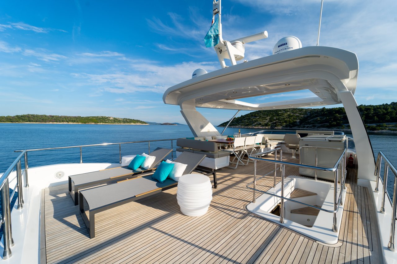 Powered by twin 1400 hp engines, MINEIRA offers thrilling performance while maintaining comfort. With a cruising speed of 26 knots and a top speed of 32 knots, she allows guests to cover the Adriatic quickly and efficiently. Stabilizers at anchor and underway ensure smooth experiences, while her teak decks and bow thruster enhance maneuverability and style. She allows 1.82m draft & 5.6m beam.
