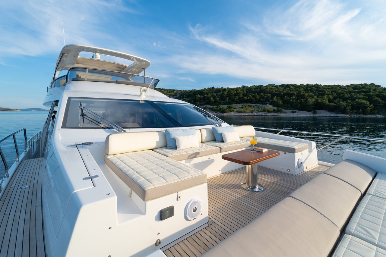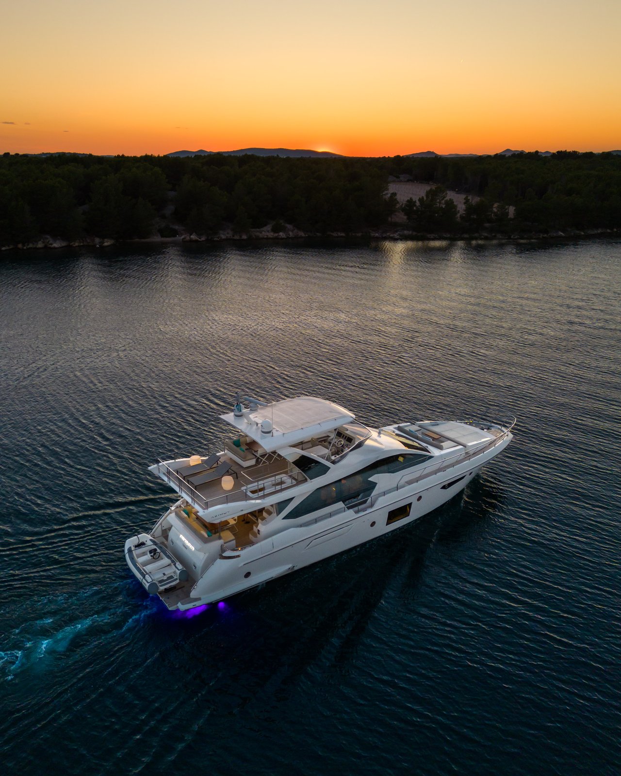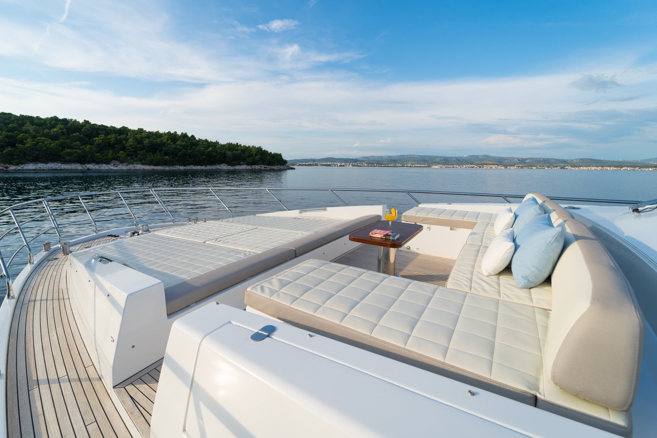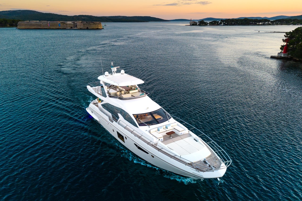 MINEIRA is a 74-foot Azimut yacht that blends speed, elegance, and modern Italian flair. With her sleek exterior lines, spacious flybridge, and bright open-plan interiors, she offers the perfect balance of performance and relaxation. Docked in Croatia, she is an exceptional choice for family holidays, couples’ getaways, or small groups eager to explore the Adriatic in refined style.