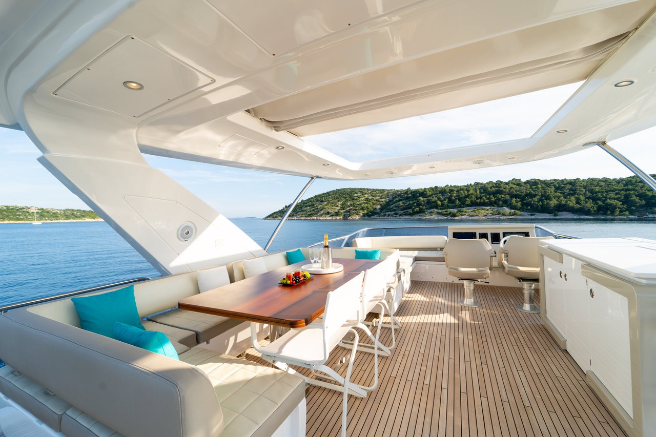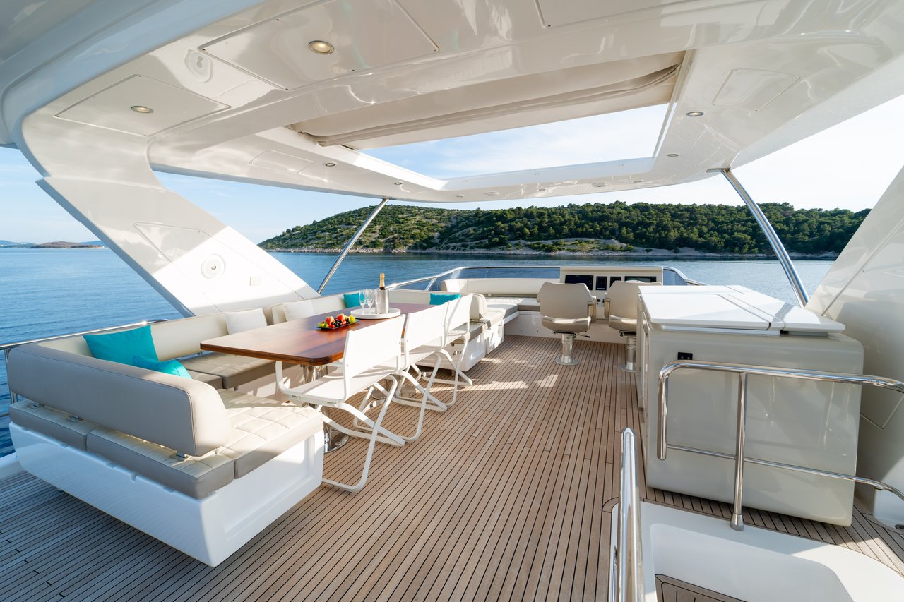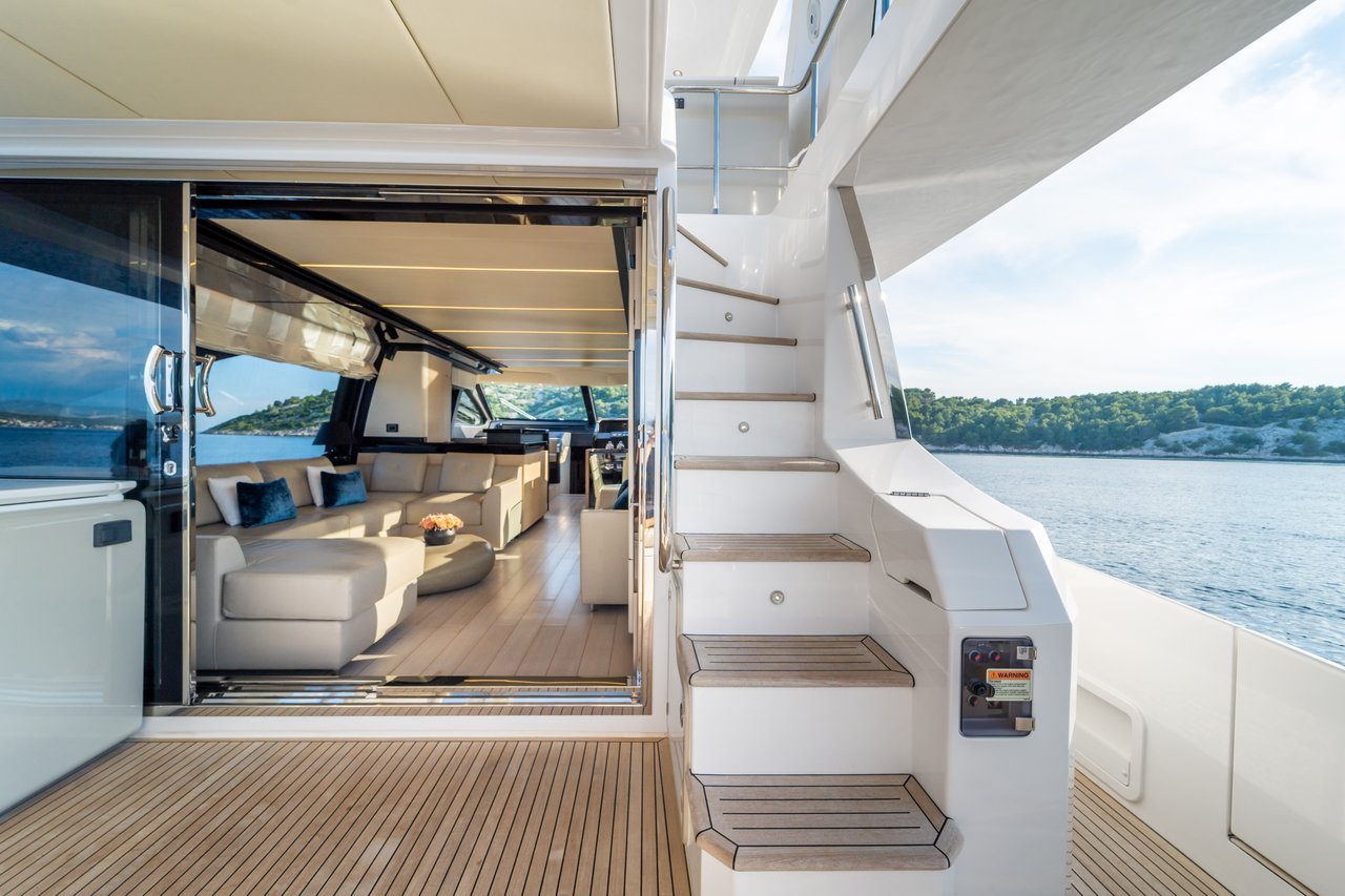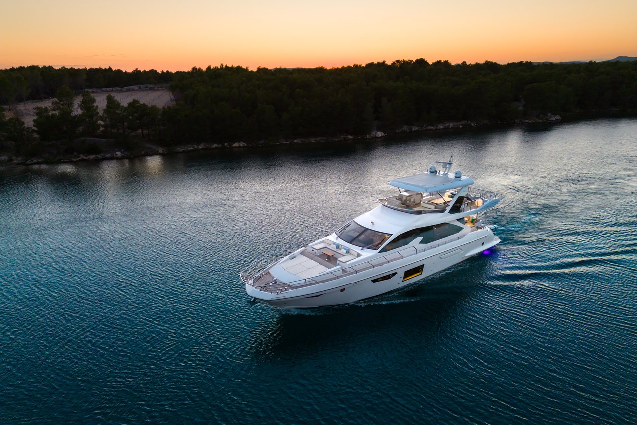 MINEIRA is a 74-foot Azimut yacht that blends speed, elegance, and modern Italian flair. With her sleek exterior lines, spacious flybridge, and bright open-plan interiors, she offers the perfect balance of performance and relaxation. Docked in Croatia, she is an exceptional choice for family holidays, couples’ getaways, or small groups eager to explore the Adriatic in refined style.