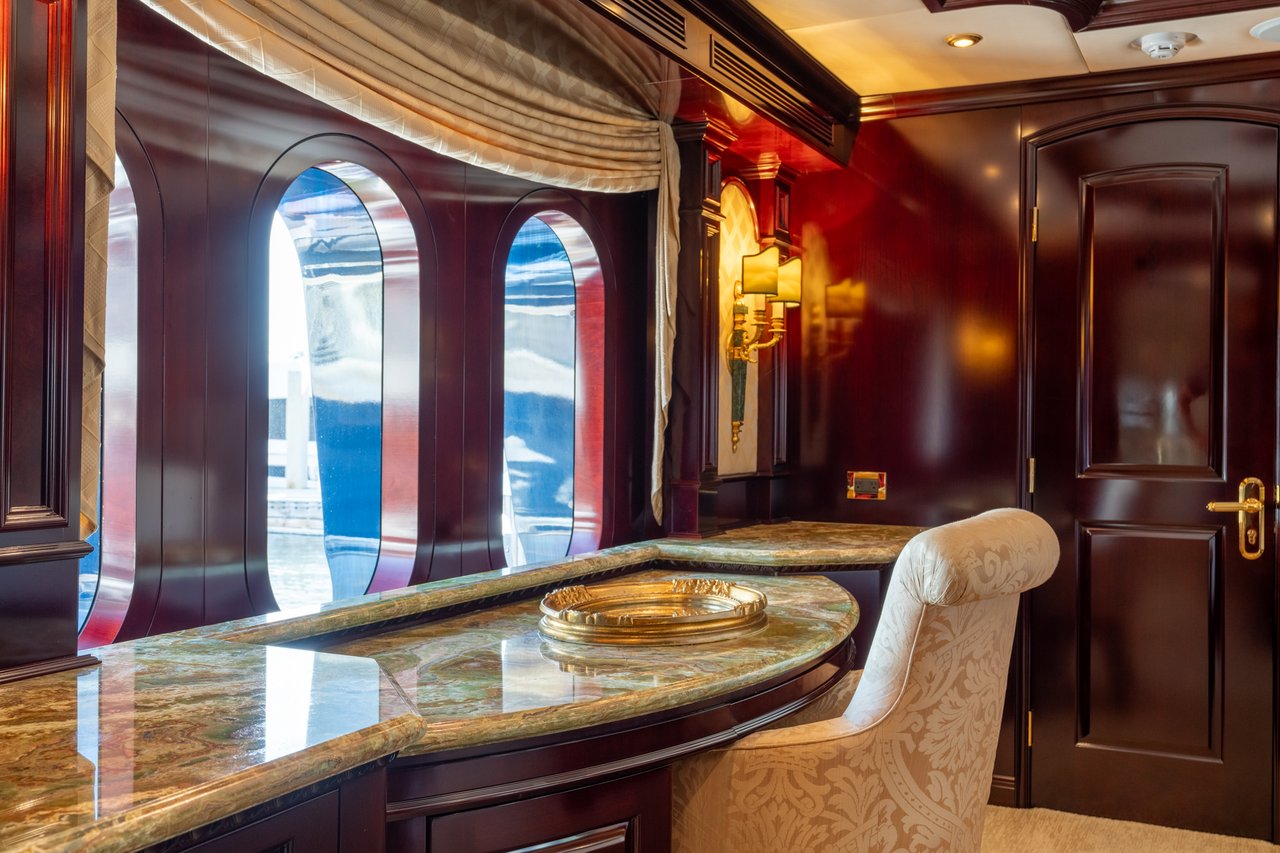 Her low draft of 2.2m (7′3″) allows access to shallow bays and hidden anchorages, while an advanced stabilisation system ensures exceptional comfort both underway and at anchor.