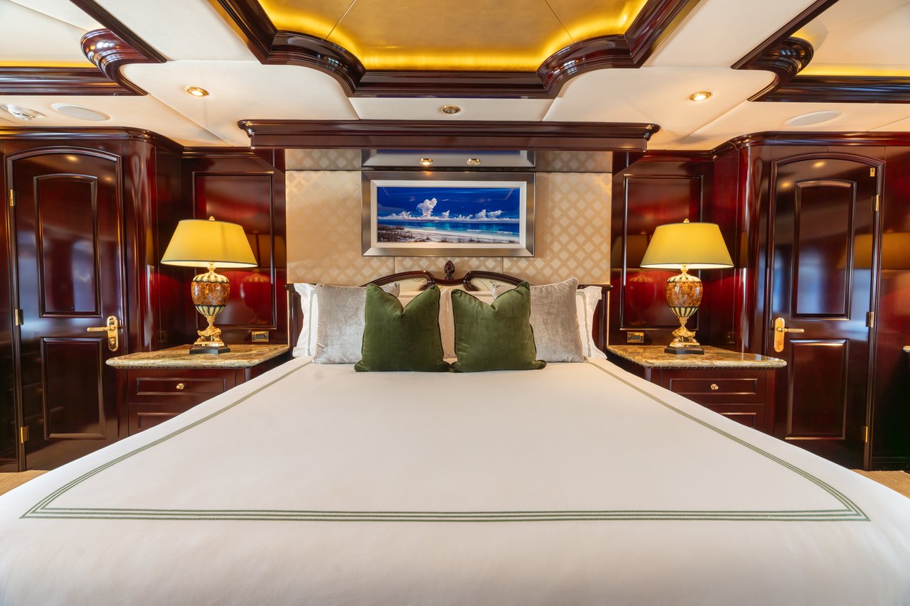 Each cabin is appointed with ensuite facilities, individual climate control, and elegant finishes. The master suite’s thoughtful design creates a true private retreat, while the guest cabins offer a serene haven after a day of coastal exploration.