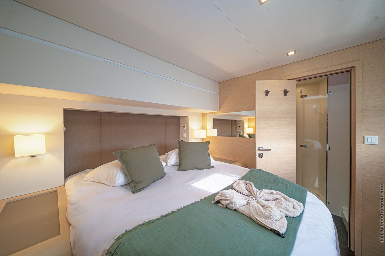 A professional crew of 3, including the captain, ensures seamless service, while separate crew quarters provide guests with complete privacy.