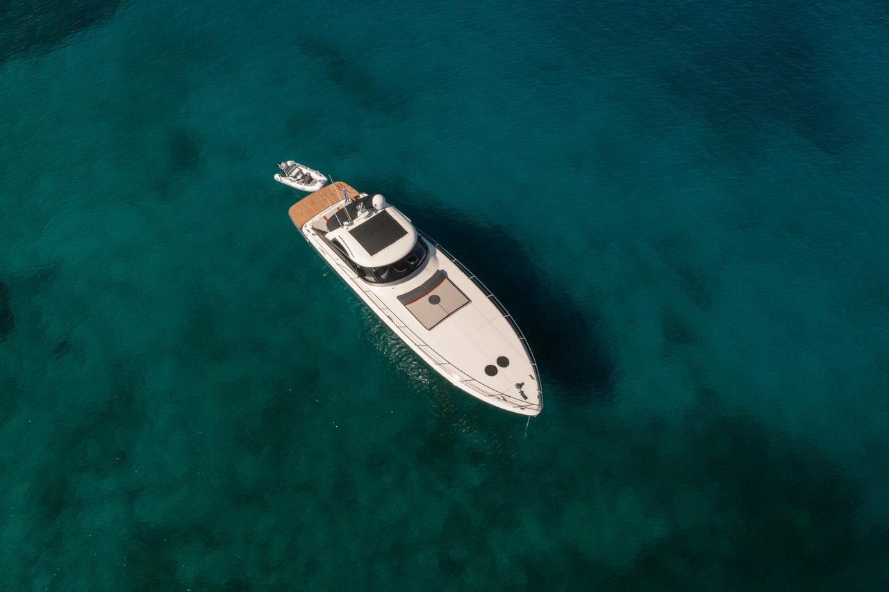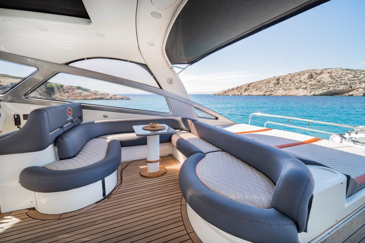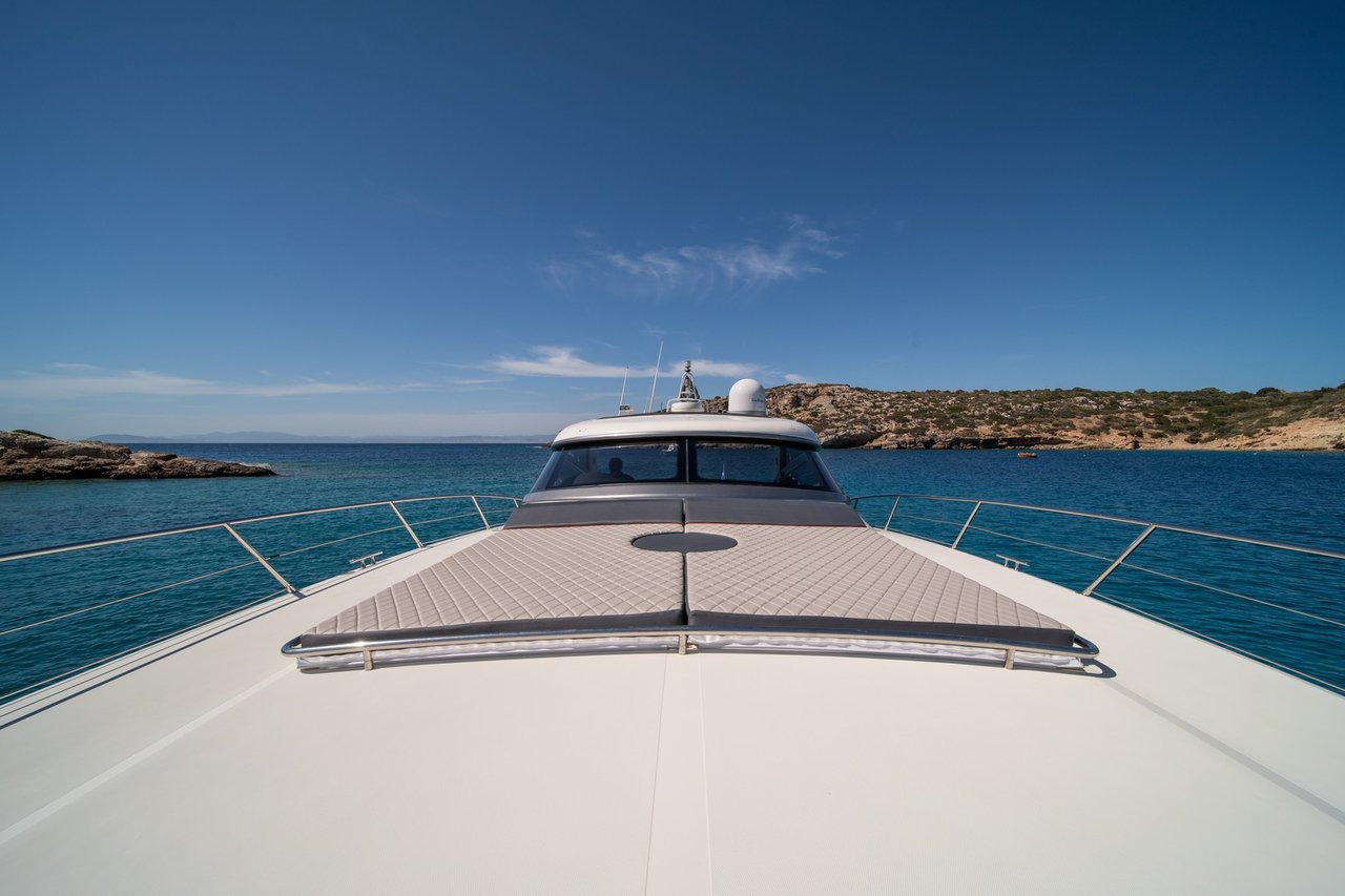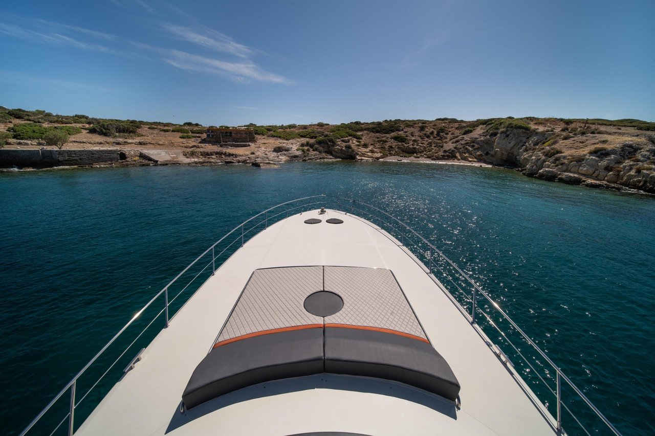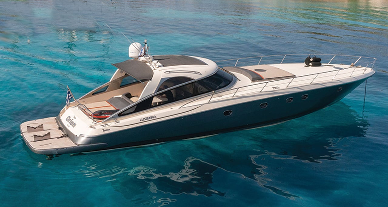 ORION is a sleek and sporty Baia 63 Azzura motor yacht, combining Italian design, exhilarating performance, and luxurious comfort. Built in 2002 and refitted in 2022, she offers the perfect blend of speed and style for exploring Greece’s enchanting islands. With a cruising speed of 33 knots and a top speed of 45 knots, she is the ideal choice for guests who want to maximize time between destinations while enjoying the thrill of high-speed cruising.