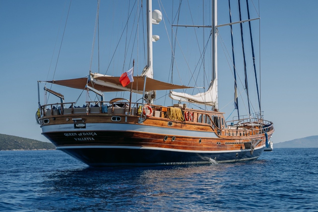 Sail the Mediterranean in timeless style aboard QUEEN OF DATCA — where elegance meets adventure. Reserve your charter now for an unforgettable journey at sea.