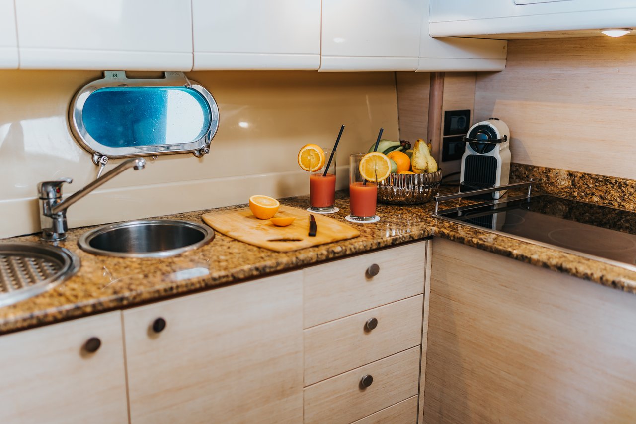 Equipped with modern comforts and essential systems, SECRET ensures a smooth and enjoyable charter for all guests. From her fully equipped galley to climate control, she offers both convenience and luxury for life at sea.