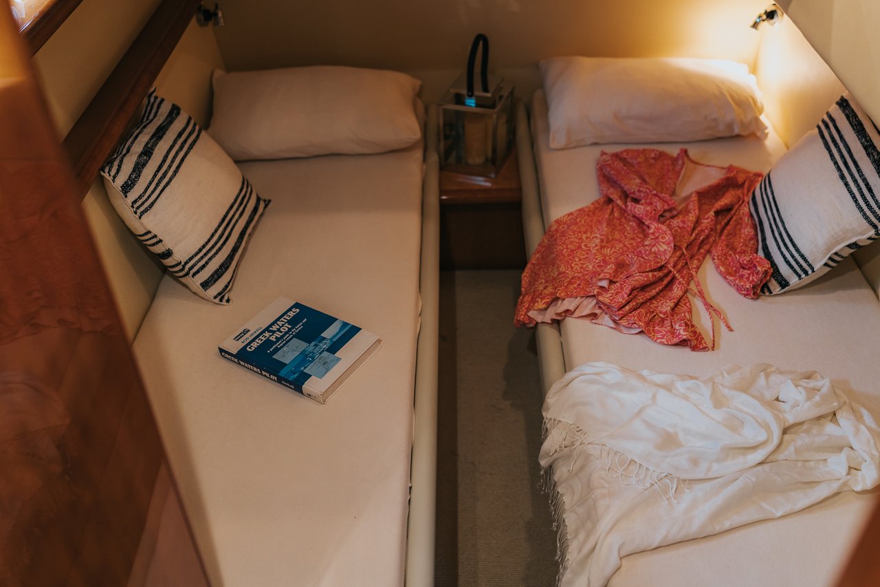 With her planing hull and robust Caterpillar engines, SECRET delivers thrilling performance on the water. She cruises comfortably at 22 knots, with a top speed of 30 knots, making her ideal for both quick island hops and extended coastal exploration.