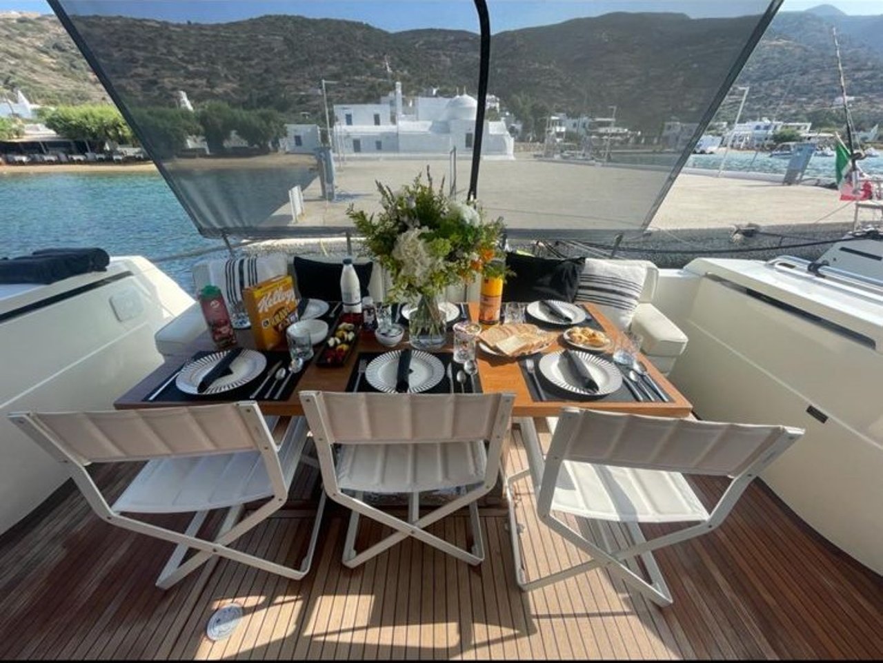 SECRET, a Ferretti 53, offers the perfect balance of performance and elegance for Greek charters. Based in Mykonos during the summer and Athens in the winter, she is ideally positioned to explore both cosmopolitan islands and tranquil anchorages.