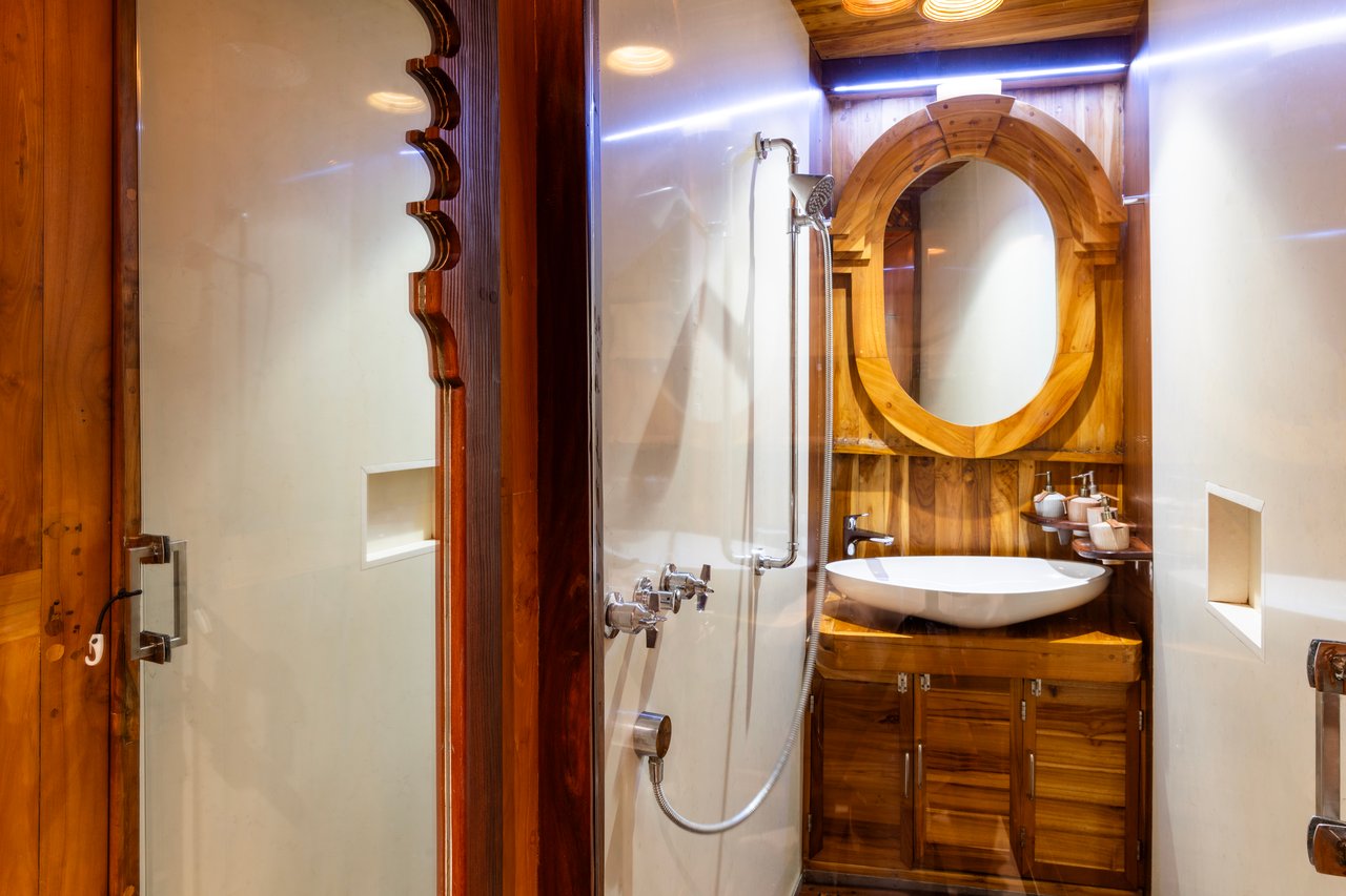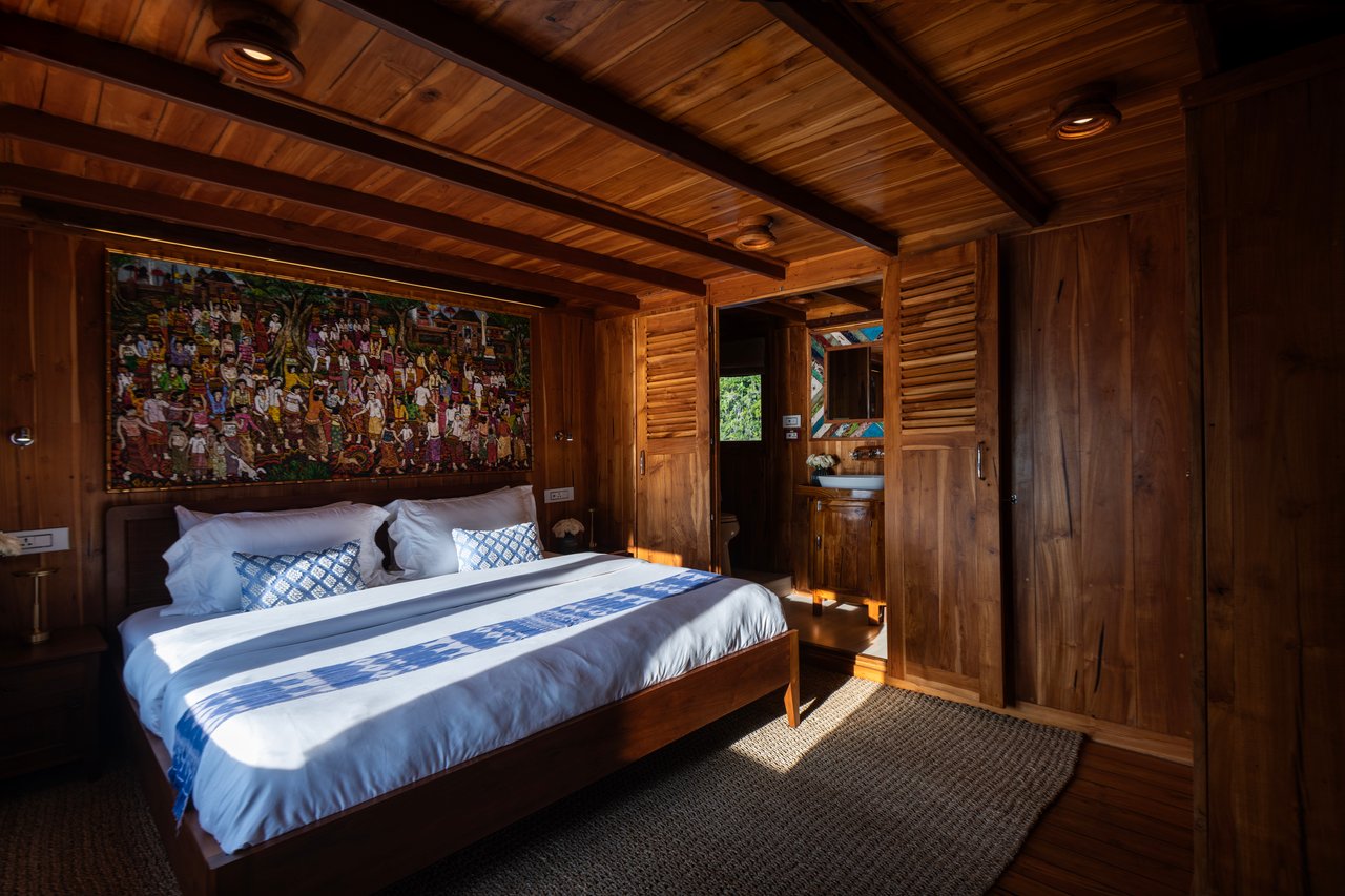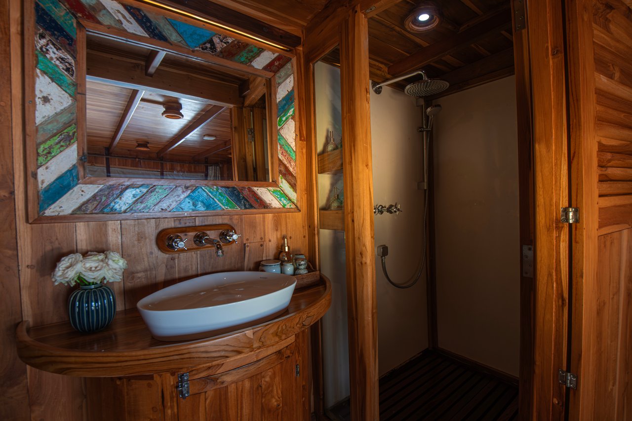 Hand-crafted wooden schooner • Built for Indonesian exploration • Eco-conscious design • Low fuel consumption & no single-use plastics • Silent sailing enabled by advanced materials • Accommodates 6 guests • 3 luxurious cabins • Professional crew of 12 for exceptional service • Unique itineraries • Enjoy 18,000-island archipelago • Cinema, Karaoke • Water maker & Generator