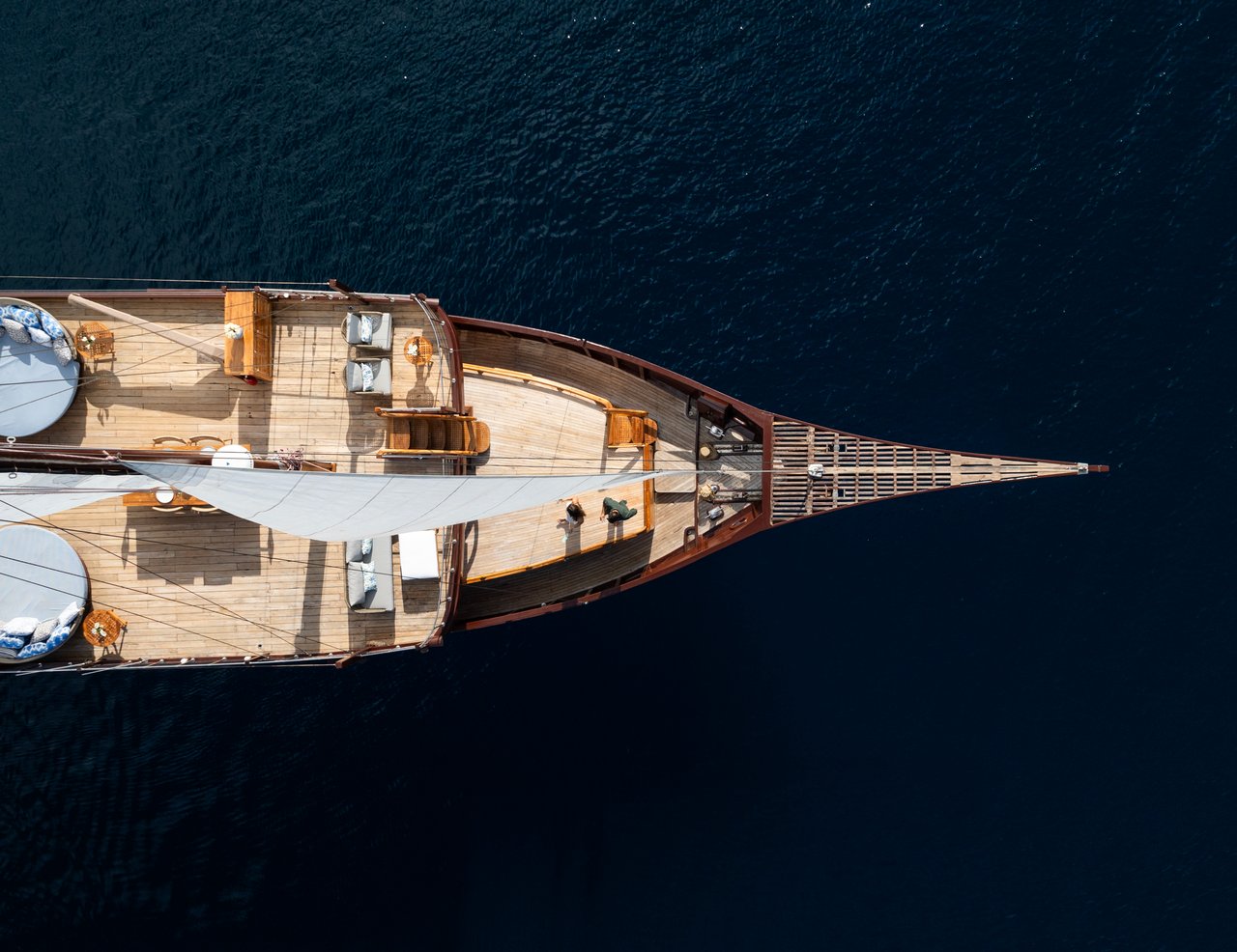 Built with a wood hull and wood superstructure, charter yacht SEQUOIA cruises smoothly at 7 knots with a maximum speed of 12 knots. Her design allows access to remote anchorages and pristine bays, opening doors to destinations larger yachts can’t reach.