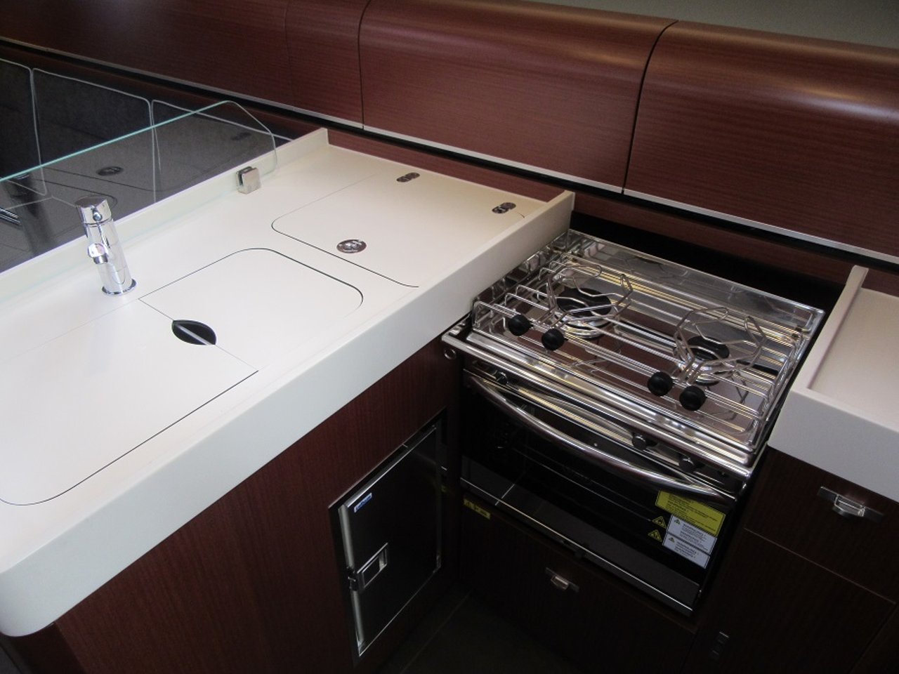 • Functional galley with stove and refrigerator