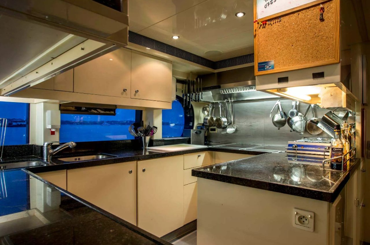 Outdoors, SIROCCO provides expansive decks for both relaxation and social gatherings. Guests can dine alfresco, lounge on cushioned sunbeds, or enjoy a cocktail while watching the sunset from the sundeck. Her wide swim platform ensures easy access to the sea, enhancing both relaxation and water sports.