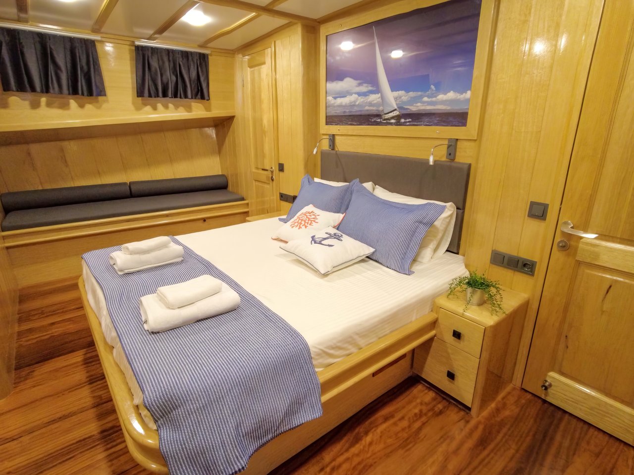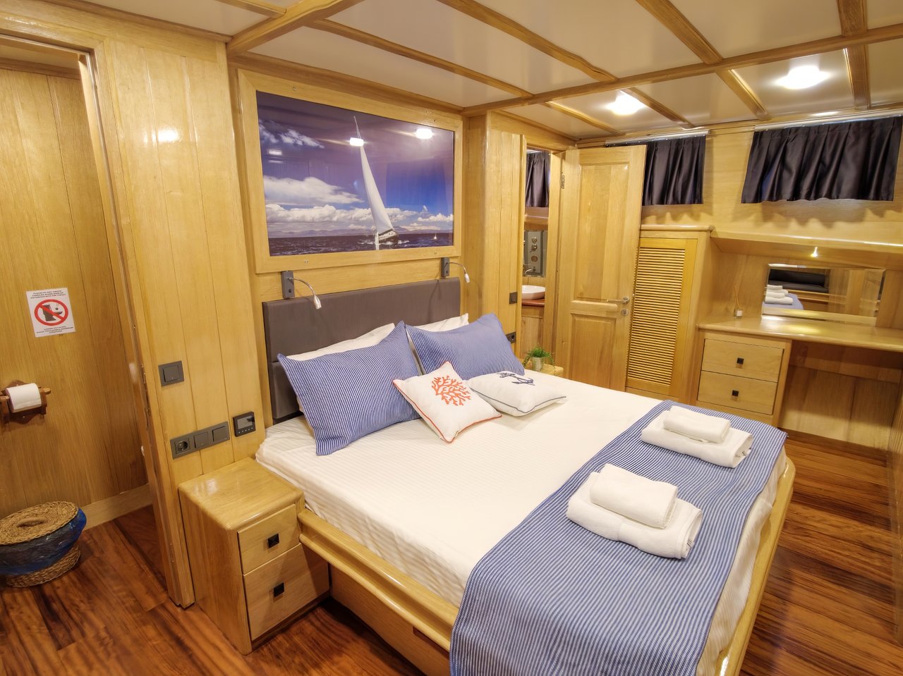 SU PERISI C provides comfortable accommodation for up to 8 guests across four well-appointed cabins. Her layout is designed for privacy and relaxation, featuring contemporary Turkish craftsmanship and soothing marine tones.