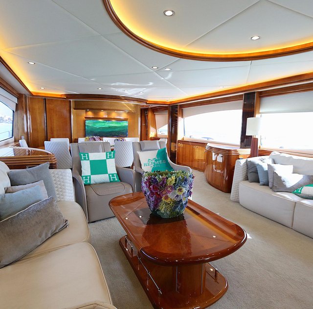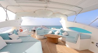 Every detail aboard Charter Yacht YCM 105 is curated to enhance your experience. Enjoy alfresco dining under the bimini, or relax in the deck Jacuzzi while taking in panoramic ocean views.