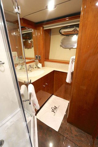 Constructed with a GRP hull and superstructure, she features a planing hull design, delivering speed and stability. Her underway and at-anchor stabilisers ensure a smooth and steady cruising experience, even in open waters.