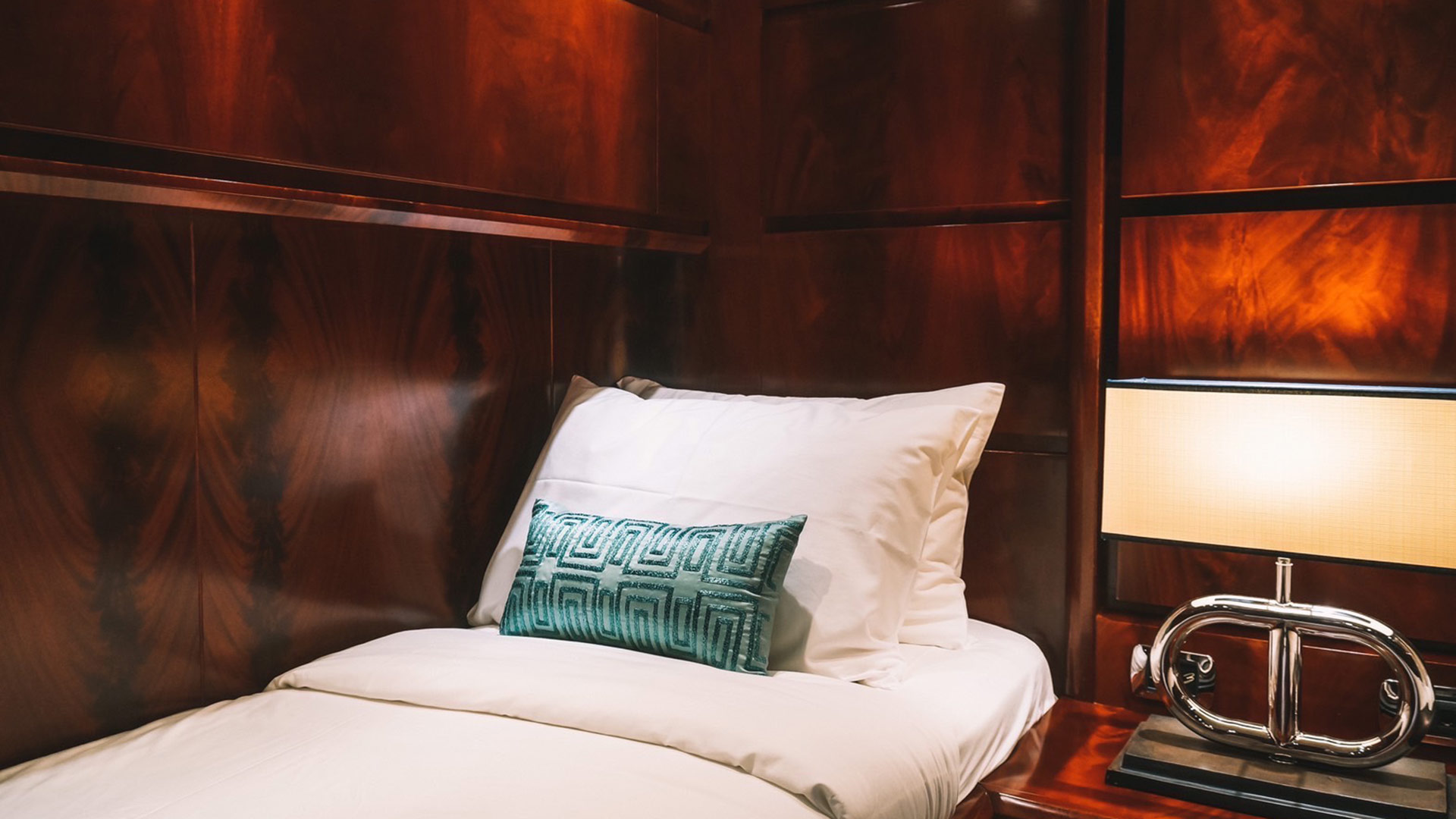 FOR YOUR EYES ONLY welcomes up to 10 guests in a thoughtful layout designed for comfort, privacy, and effortless living. Her cabins combine tasteful décor with well-planned spatial flow, ideal for chartering families or mixed groups.