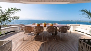 • Aft dining areas ideal for evening meals and cocktails
