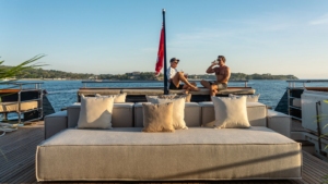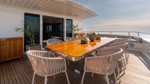 GALILEO’s exterior decks are designed for open-air living, offering a generous array of spaces for sunbathing, ocean-view dining, fitness activities, and social moments. The clean, open sun decks are especially suited for yoga, meditation, or wellness sessions, while the aft areas provide perfect settings for gatherings, lounging, and enjoying the ocean breeze.
